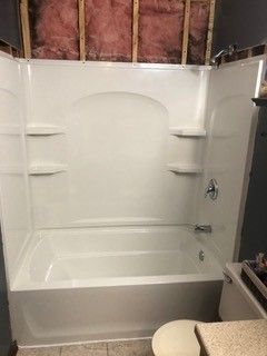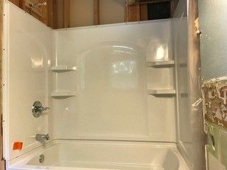 Updating your bathroom? Adding a new bathroom? Need to replace a current bathtub or shower? Look no further than a prefabricated tub or shower installation. Tiled showers and bathtubs are beautiful but are expensive and require upkeep. These units are made with a strong material that will be durable and stay beautiful for years to come. The sleek design makes these units easy to install in any part of the construction process. Can often be installed in one day! We can take care of the demo and/or additional framing if necessary. These units are not installed over old tubs or showers. We provide affordable pricing for a brand-new tub/shower that you will enjoy for years to come. Call us today to learn more about the benefits of these installations and for a free estimate!